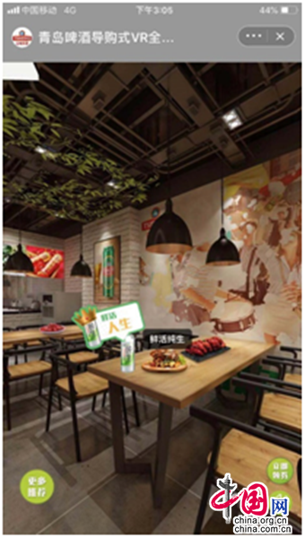 中国网10月9日讯 近日,青岛啤酒天猫官方旗舰店发布首个“导购式VR全景店”。“欢迎来到青岛啤酒全景店铺,我是您的虚拟助手,请问您想购买青岛啤酒用于哪种场景?”身临其境的购物感受之外还能享受1对1的私人导购服务,宛若游戏界面,为用户呈现“撸串、聚会、饮酒、派对、情侣”五大消费场景。点击进入,即可跟随虚拟助手进入360度的全景消费场景,场景真实,并推荐相应的青岛啤酒品类。