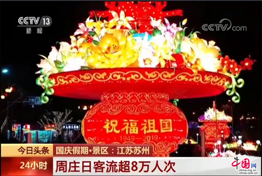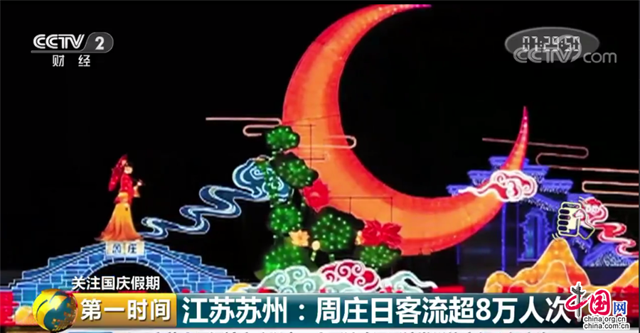 清波荡漾、灯影摇曳,恍如穿越千年。古镇市河两岸,一组组以“渔”“耕”“和”为主题的彩灯,生动展现了周庄水乡古老民俗。传统彩灯与蚬江湾、南湖湾的艺术光影遥相呼应,带来极为震撼的视觉体验。台湾老街灯组融合了创新的昆山故事和台湾特色文化,香村祁庄灯组,则编织了一幅温馨喜悦的江南田园图。