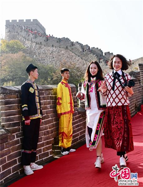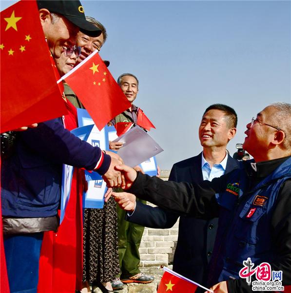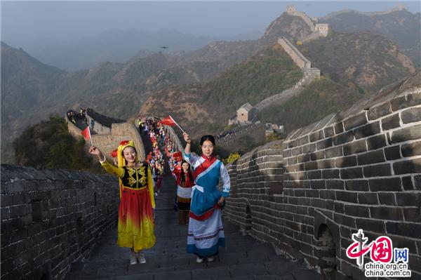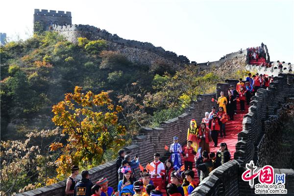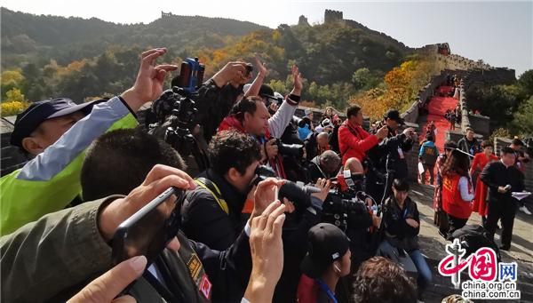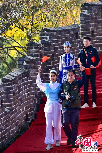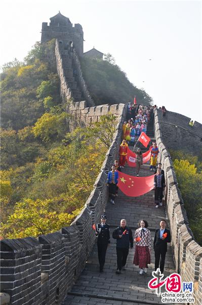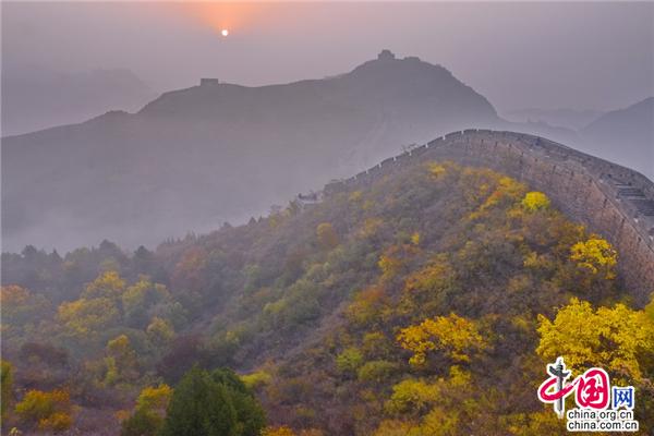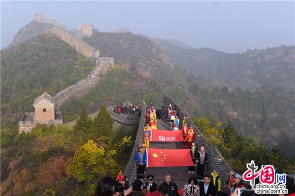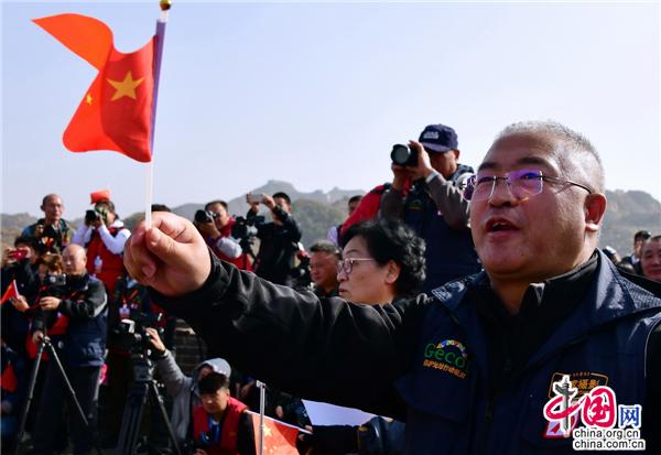 10月20日晨,一轮红日冉冉升起,恍如仙境的金山岭长城,嘹亮的国歌声中,数百摄影人一起登上长城之巅。