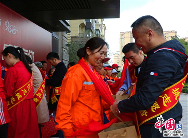 中国网10月28日讯 2019年10月26日是徐州市第7个环卫工人节,致敬最美城市守护者“城市之美,感恩有你”慰问环卫工人活动在徐州市经开区玺悦龙城商业街广场举行,当日上午100名环卫工人受邀参加。