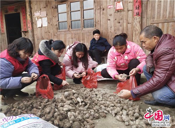 苏知付一家6口人,有4人残疾。由于家中缺少劳动力,眼看家中的5亩香芋已经成熟,苏知付和妻子两位残疾人根本就忙不过来。结对帮扶责任人苏文文得知情况后,立即组织了一个30人的志愿小分队前往帮忙。在志愿者的帮助下,苏知付如愿地将香芋销售一空。