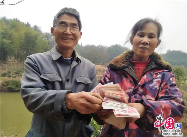 中国网1月22日讯 1月21日,湖南邵阳仁善志愿者协会会长马能及邵东本土爱心人士张新民、黄建国、姜和平等来到邵东市九龙岭镇白鹤村联合开展消费扶贫,爱心认购该村建档立卡贫困户肖建军、李宋英夫妻饲养的大肥猪。“那头小一点的留着自家过节用,这头大的今天卖了七千多元。真心感谢党的好政策,感谢驻村扶贫工作队,感谢大家的爱心认购。”手握卖猪所得现金,肖建军逢人便说。