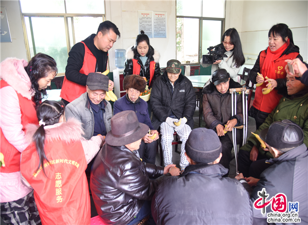 随后,志愿者们来到了长春镇香铺仑敬老院进行关爱鳏寡孤独活动,志愿者们带着水果、食用油等物资,还和这里的五保户老人们一起品尝了美味的饺子,祝福老人们健康长寿、幸福安康。