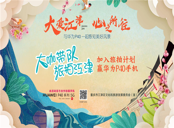 “随着疫情防控形势不断向好,各地旅游景区将逐步迎来游客,此次与华为P40系列手机联手,是江津区文旅品牌跨界推广的一次尝试,以华为新机为载体,以江津区丰富文旅资源为内容,实现双赢!”江津区文化旅游委有关负责人介绍。“欢迎广大市民积极参与,一起“拍”出山水“颜值”,“刷”出人文“气质”。