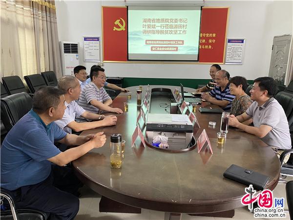 2020年7月17—18日,湖南省地质院党委书记叶爱斌、副院长李定桥,在安仁县委副书记杨理诚、县人大常委会副主任邓桂英、金紫仙镇党委书记戴伶俐以及院二级巡视员科技外事室处长刘启顺、二级巡视员工会处长廖春元、宣传中心处长邓坤江、综合协调部处长刘小龙的陪同下,顶着高温酷暑来到院四个扶贫点之一的安仁县金紫仙镇源田村,调研指导驻村帮扶、脱贫攻坚工作,看望工作队员和村干部。在食堂用餐,夜宿于乡村;考察各产业,探访贫困户;与村民谈心,通过座谈会为群众排忧解难。