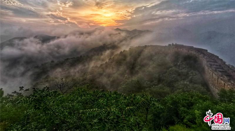 金山岭长城四季美景如画,春天山花烂漫,处处飘香;盛夏绿色浓郁,云雾飘渺;金秋飞黄流丹,层林尽染;严冬银装素裹,童话世界。
