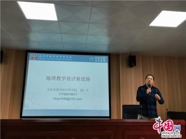 本次工作坊邀请来的专家是永州市教育科学研究院地理教研员满仁勇老师,他以《地理教学设计新思路》为题,通过案例引领学员掌握课堂教学设计的新理念、新方法,还就学员感兴趣的中考复习作了详细指导。学员们一致赞赏专家的讲座,接地气,通俗易懂,传授的知识非常实用,并表示讲座给他们一种“相见恨晚”的感觉。