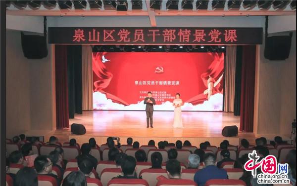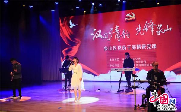 作为区委中心组学习的一种创新形式,“汉风清韵,先锋泉山”党员干部情景党课集红歌、舞蹈、情景剧、配乐朗诵等艺术形式为一体,内容上融合了传统汉文化元素、新时代主旋律和廉政正能量。