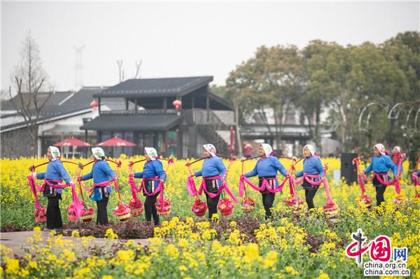 当悠扬的旋律奏响,春景、花事、歌舞、民乐、乡俗……春的元素和江南的符号创新交融,碰撞出江南文化的全新意蕴和文化张力,演绎了田园到古镇的最美画卷和青春活力。春季主题快闪活动以香村田园和古镇景观为背景,结合了田园花海、民俗表演、乡村旅游、夜色周庄等诸多元素,青春活力的歌声、优雅动人的舞蹈和扣人心弦的古筝旋律,配合着打连厢、挑花篮、荡湖船等传统民俗表演,让江南民乐与田园、古镇、水乡融为一体,展现“文化周庄”的魅力,让游人耳目一新、驻足围观。