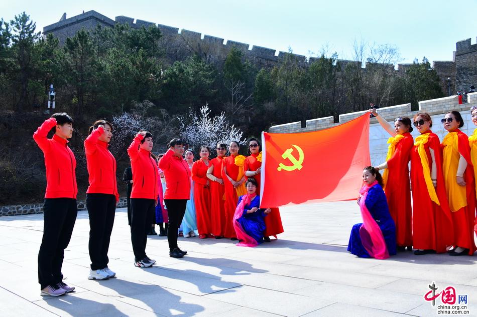 2021 金山岭长城杏花节期间,一场主题为“传承红色基因、凝聚巾帼力量”党日活动在金山岭长城举行。