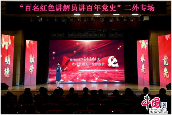 中国网4月20日讯 为庆祝中国共产党成立100周年,深入开展党史学习教育,文化和旅游部于4月16日启动“百名红色讲解员讲百年党史”宣讲活动。4月19日,宣讲活动走进北京第二外国语学院。