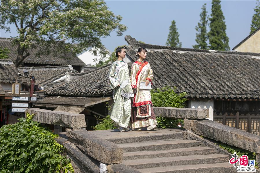 着一袭秀禾服,漫游在古镇的小街水巷,时光变得温柔,生活充满仪式感。
