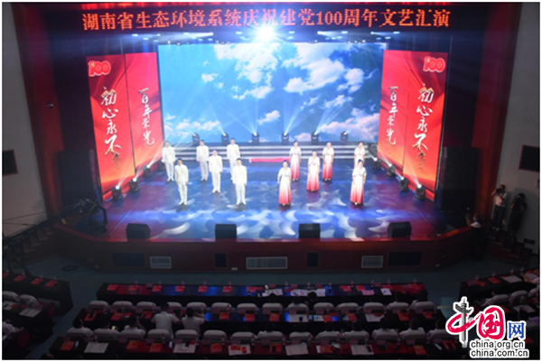 中国网7月6日讯 7月3日,“环保铁军心向党 感恩筑梦新时代”湖南省生态环境系统庆祝中国共产党建党100周年文艺汇演隆重举行。湖南省生态环境厅党组书记、厅长邓立佳等厅领导,与现场700余名党员干部职工代表欢聚一堂,并与通过网络直播“云观演”的湖南全省生态环境系统“云端相聚”,一起致敬光辉历史,礼赞百年征程,同庆盛世风华,共祝百年大党生日快乐、永远光辉灿烂。