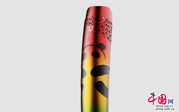 火炬正面,以国际超级IP、四川“活化石”——大熊猫为主元素,展现热情奔放、乐观包容的文化态度;