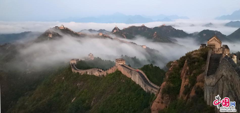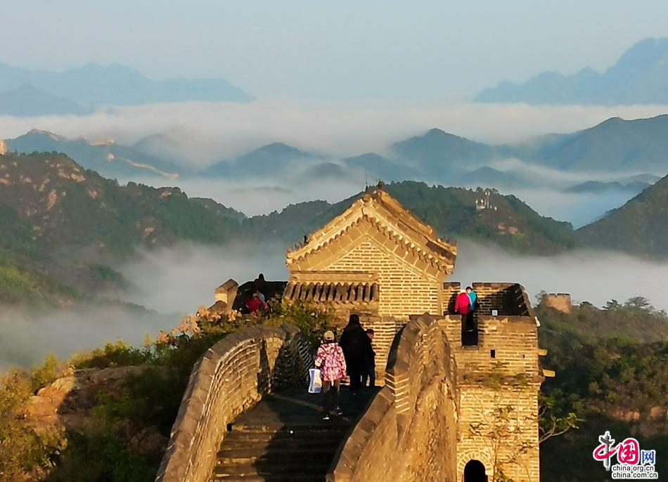 8日清晨的金山岭长城。连续两天,金山岭长城云海漫山如同仙境。