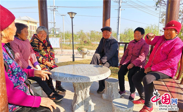 11月27日早上9:15,在睢宁经济开发区(金城街道)韩二社区新庄组的村头公园内,一群年龄在60岁以上的老人正在商讨村庄保洁事宜。