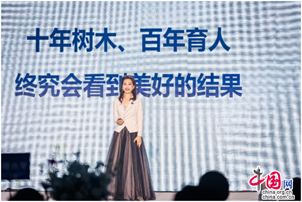 传梦公益创始人、著名演员孔维在活动中做“静候梦想花开”的主题分享,讲述“资教工程”项目历程与成果。2014年,孔维回家乡探访乡村学校,她发现乡村教育最缺乏的不是物资,而是老师,孩子们最需要的是讲台上的老师和长期的心灵陪伴,深受触动的孔维在那一年成立了传梦公益,并发起“资教工程”项目,到如今,这个项目已坚持7年多,越来越多的乡村孩子直接从中受益,得到各种不同方式的帮助,收获七彩童年。