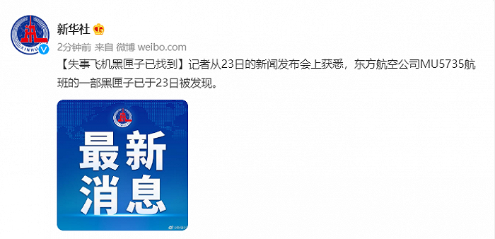 东方航空公司MU5735航班的一部黑匣子已于23日被发现。