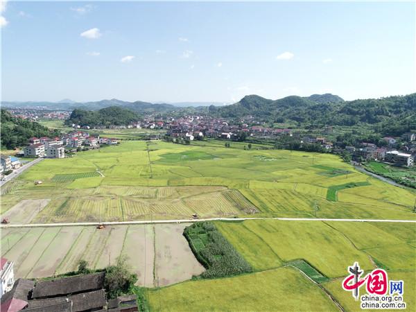 中国网7月14日电 盛夏时节,湖南省新邵县早稻陆续进入成熟期,田间地头大型收割机穿梭其中,一派忙碌景象。