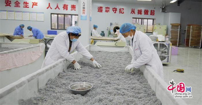 近日,来到瀚荣生态莓茶有限公司厂房,工人们正在对摊放晒干的莓茶进行产品质检,择优分拣,完成产品包装前的最后一个环节。据悉,该公司2024年莓茶产量7.2万斤,产品主要通过电商平台销往广东、浙江等沿海城市,销售额达830.79万元,同比增长37.6%。