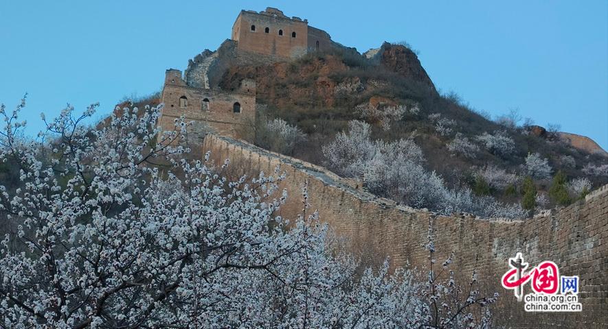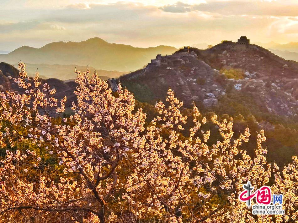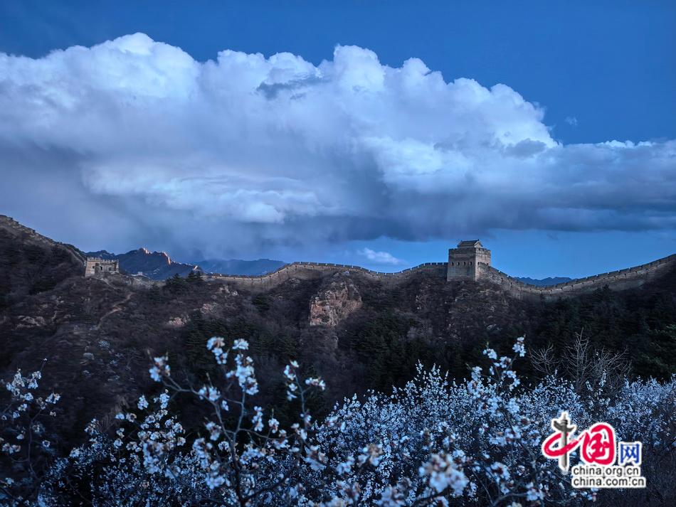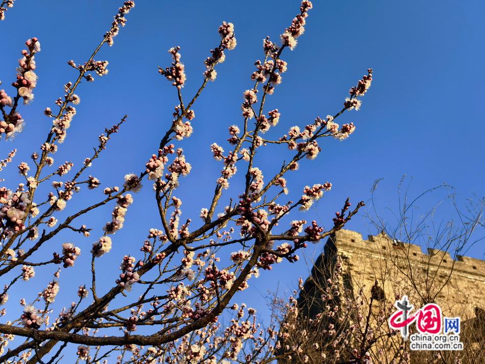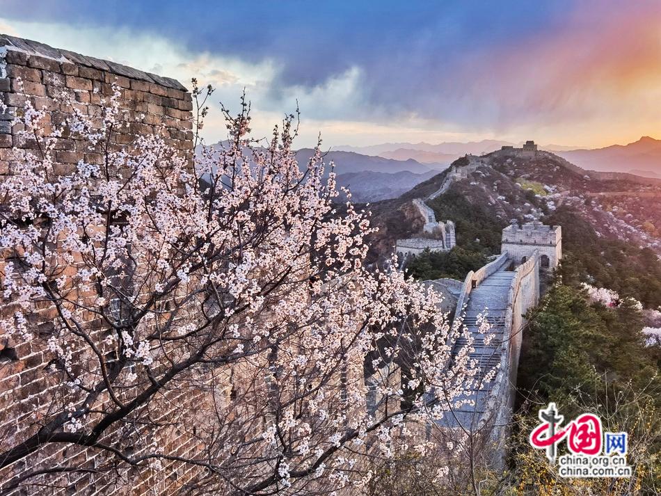 烽火台披上新蕊织就的轻纱,六百年前的砖石浸润着清甜芬芳,每一道裂痕都在诉说与春天的重逢。