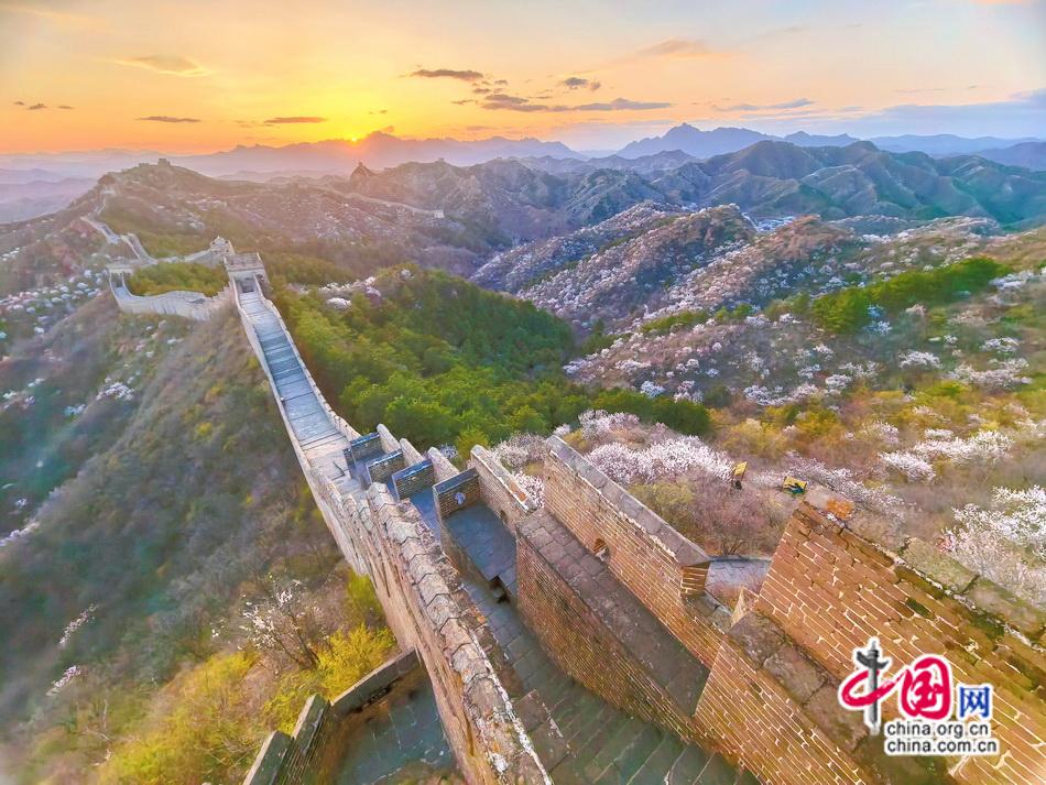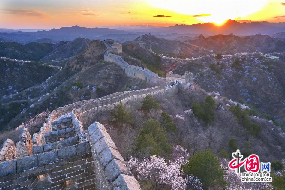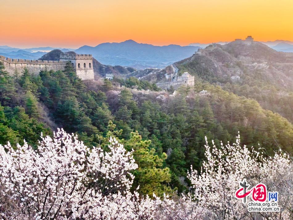 当春风掠过金山岭,绵延百里的杏林骤然苏醒。