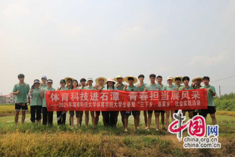 盛夏七月,绿浪翻涌。湘潭县石潭镇“万亩良田”示范片区稻香初醒,田畴如绸,阡陌似弦,正奏响一年中最澎湃的耕作序曲。7月9日清晨六点半,湖南科技大学体育学院2025年“三下乡”社会实践团队循着泥香与蝉鸣,再次奔赴这片被阳光镀金的沃土,以“插秧助耕强农业,青春奋进新征程”为主题,在稻浪与汗珠交织的画卷里,写下劳动教育的生动注脚。
