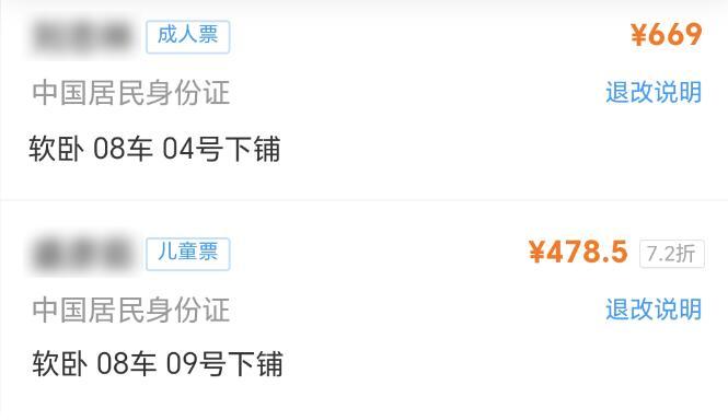 儿童优惠票软卧票价=软座票价×50%+卧铺票价(软)×100%