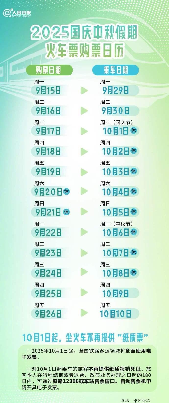 小贴士:根据铁路部门规定,对10月1日起乘车的旅客,坐火车不再提供纸质报销凭证。(来源:人民日报)