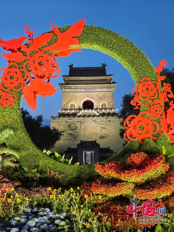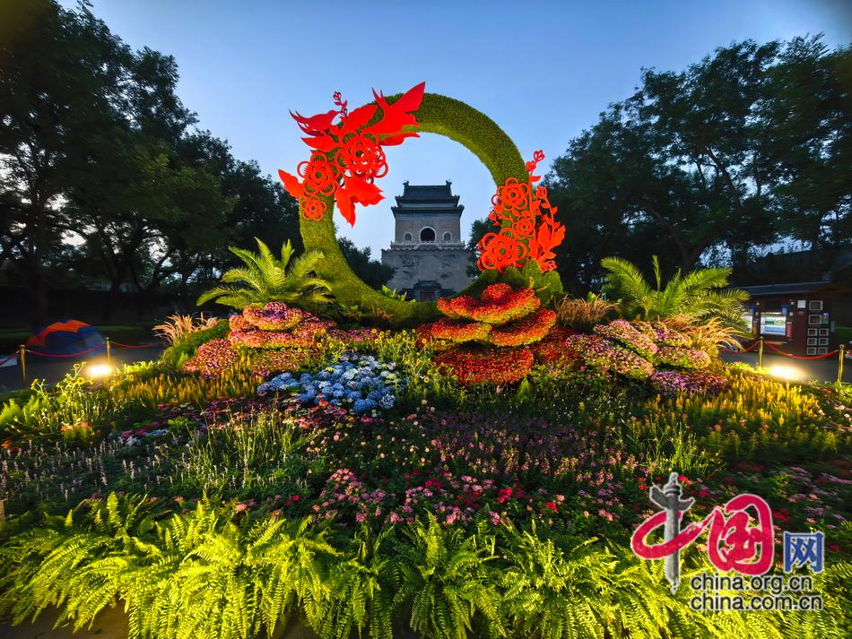 位于北京中轴线北端的钟鼓楼广场,“钟鸣花韵”花坛是北京市东城区为纪念中国人民抗日战争暨世界反法西斯战争胜利80周年布置的,设计以五色草圆环为主景,采用透景方式,将远处钟鼓楼与近处花卉造景融为一体,寓意历史长河中的永恒守望,见证民族从抗争到复兴的壮阔征程。9月中旬,北京多处抗战胜利主题花坛相继转换为国庆花坛,继续成为市民和游客的热门打卡点之一。(来源:中国网 作者:张爱东 特别鸣谢:施奕娜 马士英 汪艺 李健生 贾宜良 爱琳 静林傅伟 杨桂华)