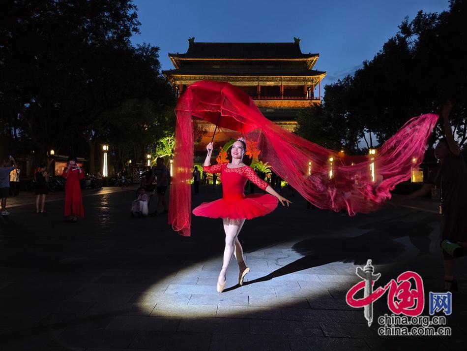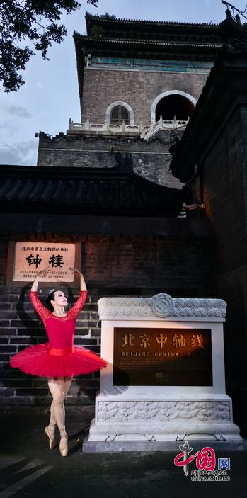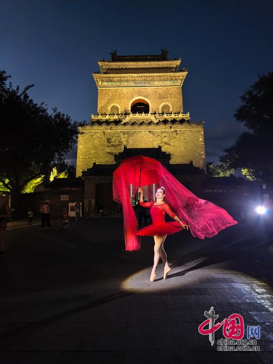 当芭蕾舞者在钟鼓楼前优雅起舞,中轴线上弥漫着节日的欢庆氛围。