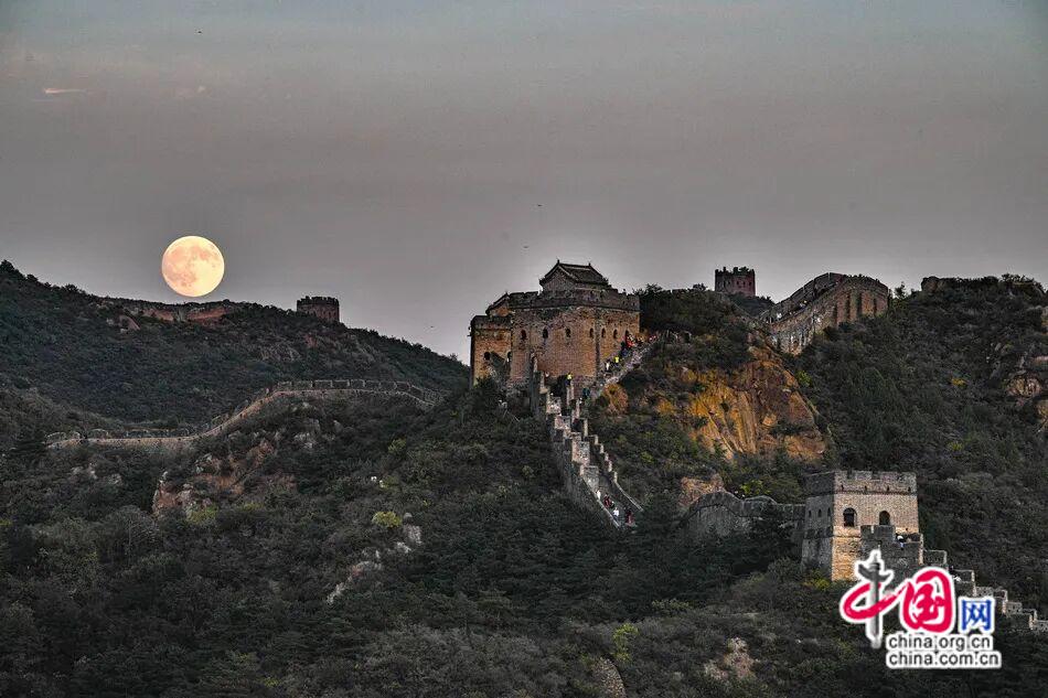 【点睛】八月十五之夜,金山岭长城褪去了白日的雄浑气势,在秋凉的微风中等候着一轮明月缓缓升起,景象美轮美奂,四周快门声此起彼伏。
