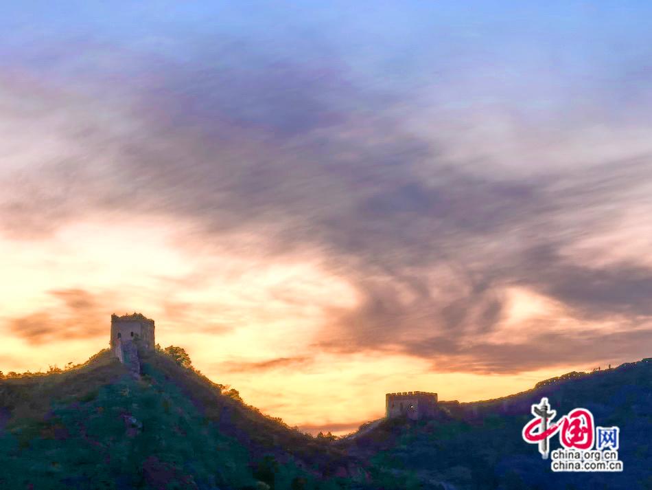 山峦起伏的古老长城宛如一幅五彩斑斓的山水画,