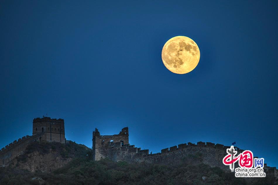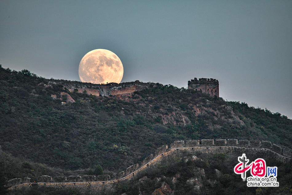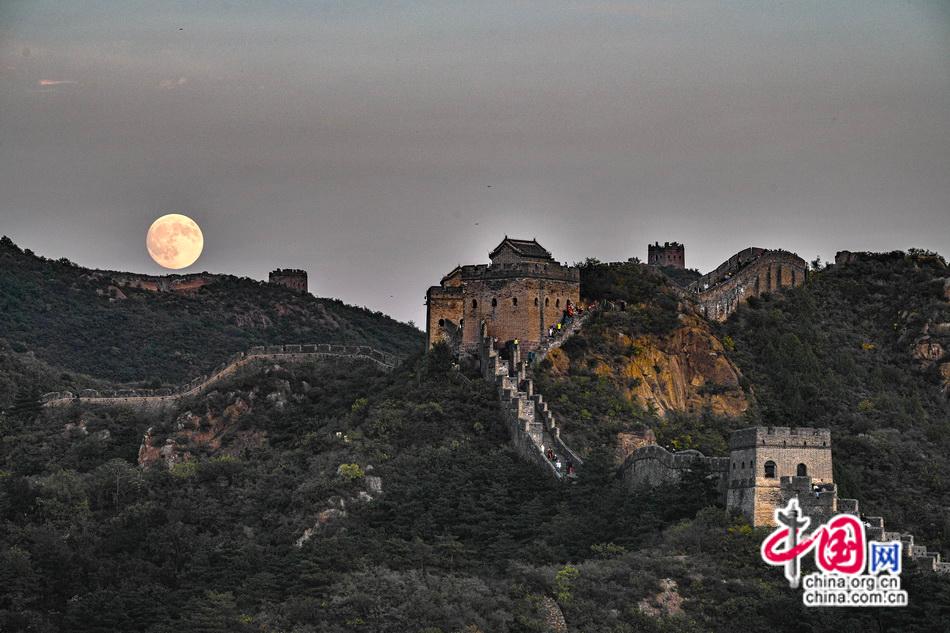 秋日的长城的满月,