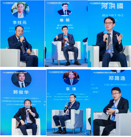 在圆桌论坛环节,由会奖专业委员会执行会长兼秘书长李柱元主持,厦门市商务局副局长、厦门市会议展览局局长喻皓,韩国MICE协会秘书长河洪國,中国旅行社协会会奖专业委员会轮值会长、中青博联整合营销顾问股份有限公司首席专家、北京古北水镇旅游有限公司董事长郭俊华,中国旅行社协会会奖专业委员会轮值会长、浙江省旅游投资集团有限公司大营销中心总经理、浙江省中国旅行社集团有限公司党委书记、董事长章璞,上海汇展信息科技有限公司合伙人郑路逸等跨领域嘉宾从政府政策、国际经验、企业运营、资源整合、科技赋能五大视角展开讨论,既探讨了城市打造国际MICE目的地的核心关键、中韩 MICE 产业深度联动路径,也分享了企业出海模式、全产业链资源竞争力及数字化技术应用方案,明确“协同共进”是行业国际化的核心路径。