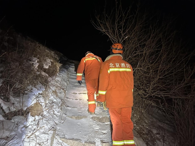 消防员上山搜救。11月13日凌晨0时20分,门头沟区斋堂消防救援站接到一男子报警,称其在灵山景区下山途中,遭遇气温骤降,加之天黑路滑,导致无法自行下山,急需救援。