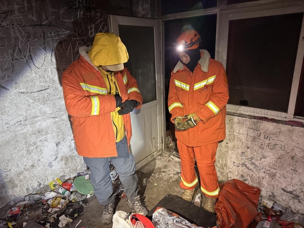 为少年穿上棉衣。途中,考虑到被困少年衣着单薄,存在失温风险,救援人员顶着大风、冒着严寒,踏着结冰道路,全力攀爬。一个半小时后,救援人员终于在废弃小屋内找到了被困者。