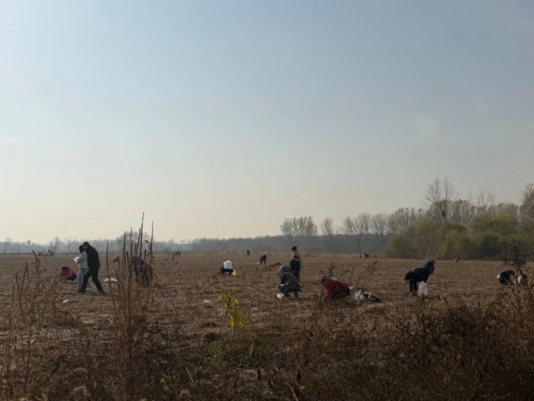 在大兴现场探访发现,这三处地点均为收割完毕的田地。第一处是萝卜地,但现场光秃秃已没有任何农作物;第二处是红薯地,聚集着不少拿着工具的大人孩子,因可挖的红薯所剩无几,大家纷纷驾车离开,寻找下一处“打野点”;第三处是黄豆地,有数十人正弯腰忙着捡地里遗留的黄豆。
