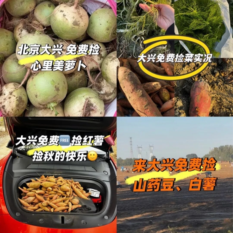 “没有‘免费捡菜’这种活动,不是村委会组织的,也不是种植户发布的信息。”这名村干部明确表示,大兴机场周边有不少农田,种植萝卜、白菜、红薯和卷心菜等,一到收获季节,就有人开着车到处转悠,找收割完毕的地块,“即便收割完遗留的农作物,种植户表示‘不要了’才能捡。”
