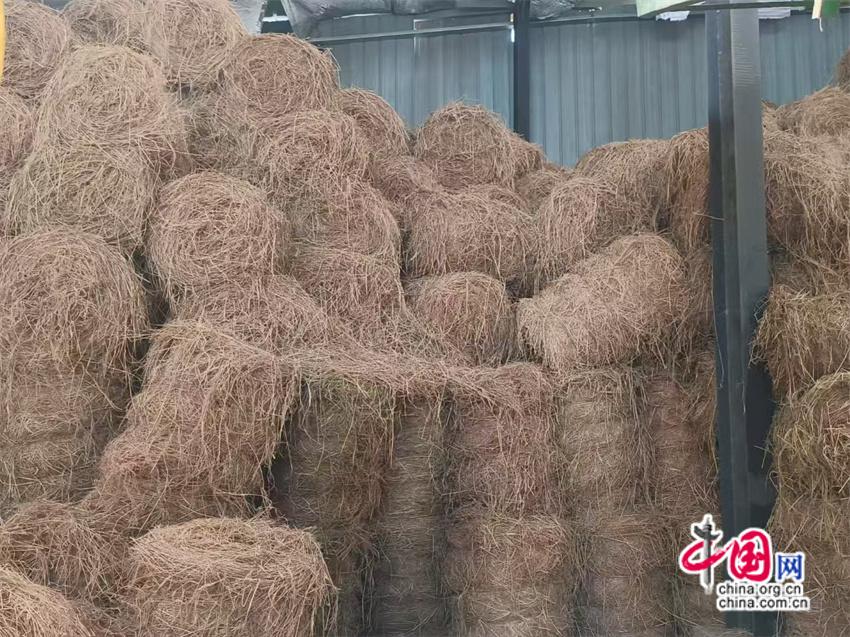 打捆后的秸秆通过“饲料化”处理,成为养殖业的重要资源。在收储点,2000余吨秸秆经加工后转化为牛的粗饲料,既降低养殖成本,又缓解饲料供给压力。