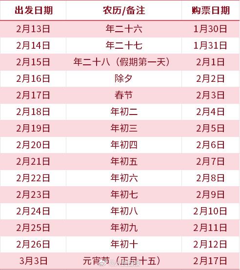 2月17日可购买元宵节(3月3日)的返程火车票。