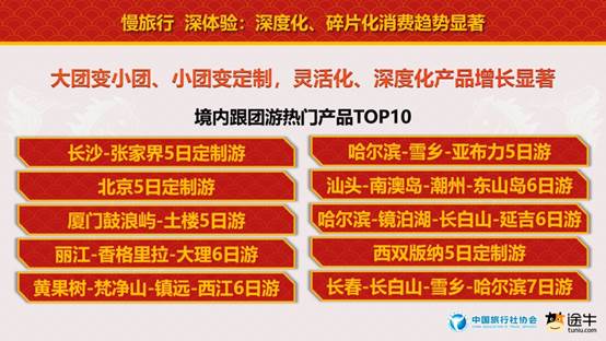 碎片化方面,自驾游、自由行、私家团、定制团、小团游等灵活、个性的打包旅游产品占比增长明显。在春节旅游产品预订中,周边游方向自驾游用户预订出游人次占比超85%,出境短线游方向自由行用户预订出游人次占比过半。